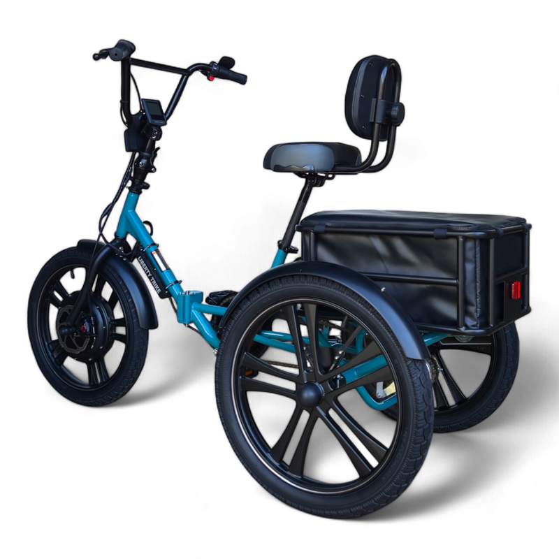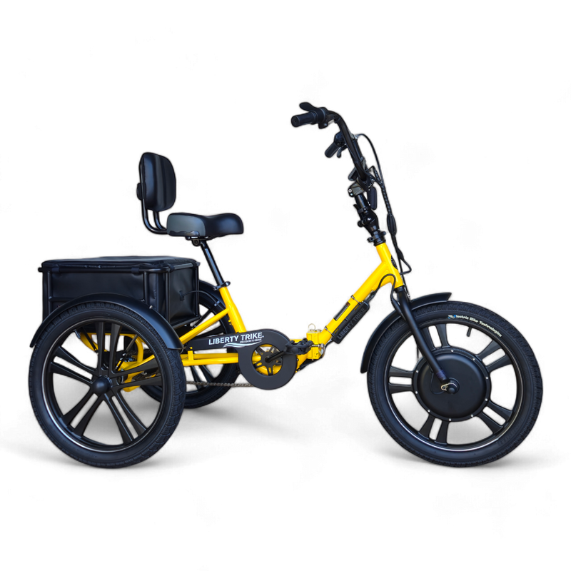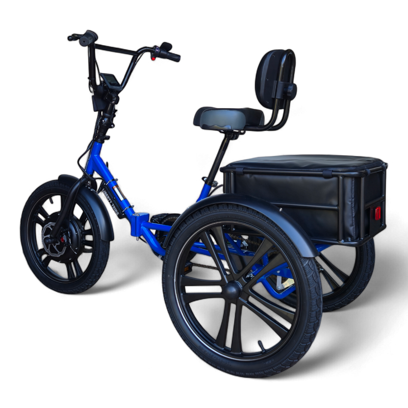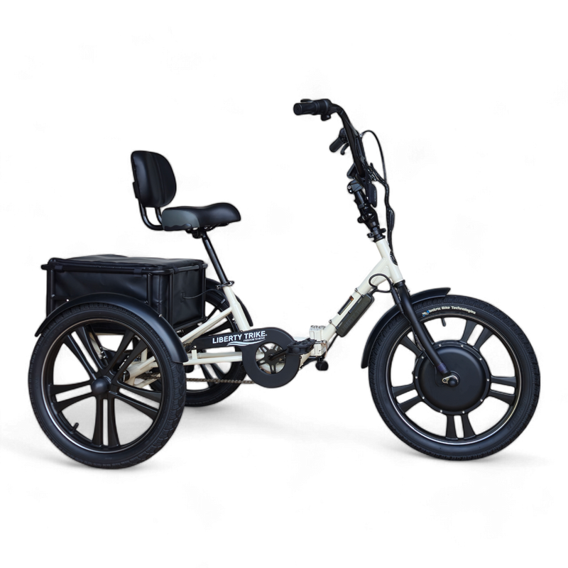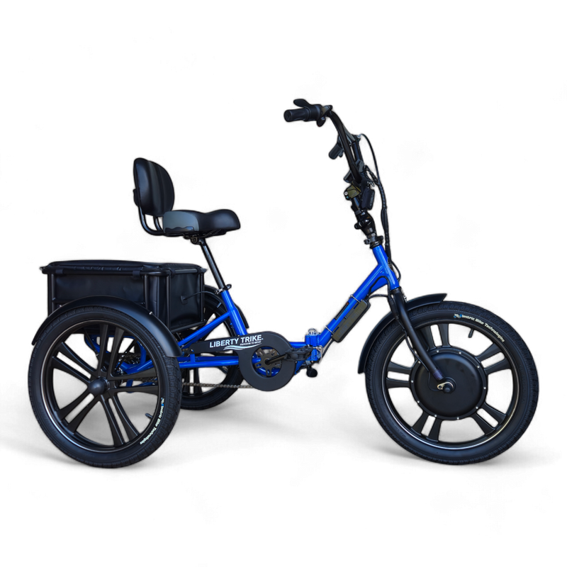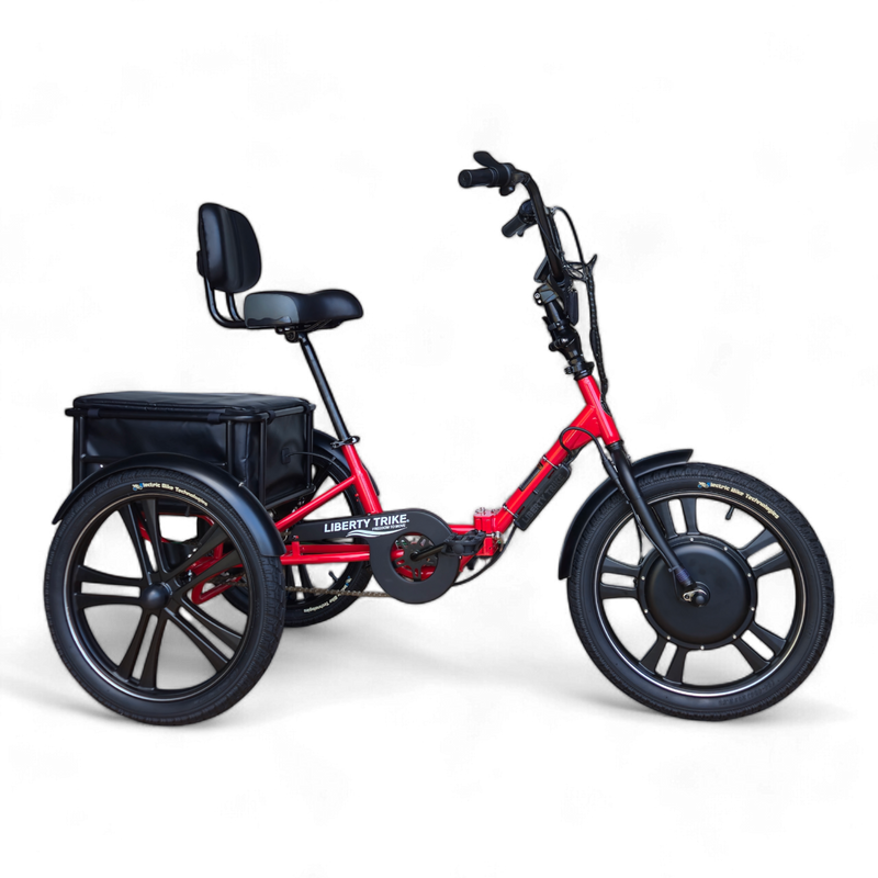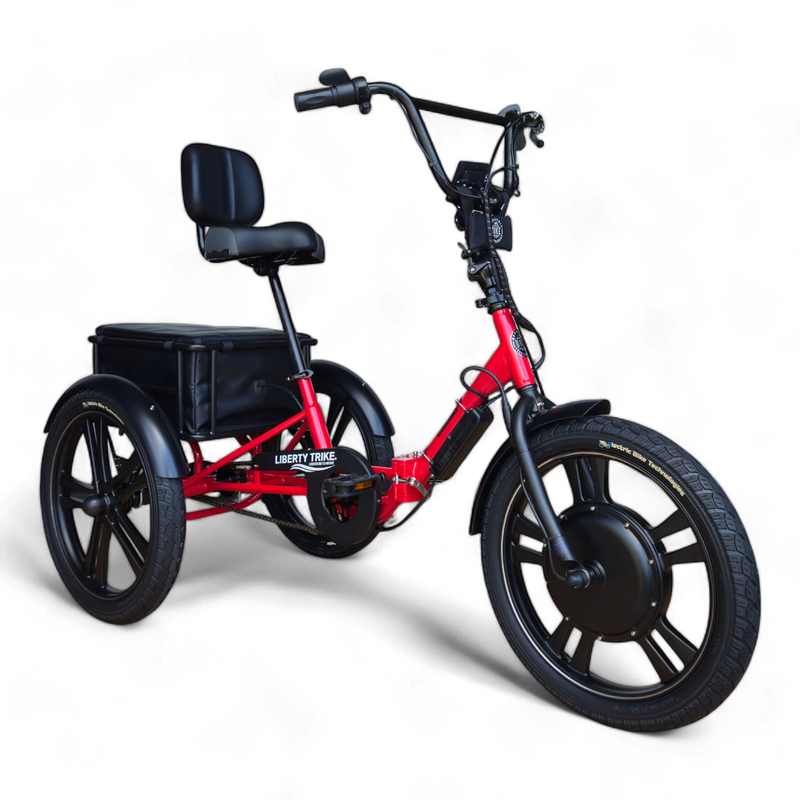 The Liberty Trike is perfect for those who want the freedom to move actively or effortlessly on three wheels. Its compact, foldable design makes it easy to store, transport, and navigate through tight spaces. Equipped with a powerful 750W direct-drive motor and durable hydraulic brakes, the Liberty Trike handles various terrains and moderate inclines with ease. The patent-pending folding system allows the trike to nest compactly, while the adjustable rear basket and Liberty Lever throttle provide comfort, convenience, and maximum control. Whether you're exploring new places or running errands, the Liberty Trike delivers portability, power, and reliability for everyday use.