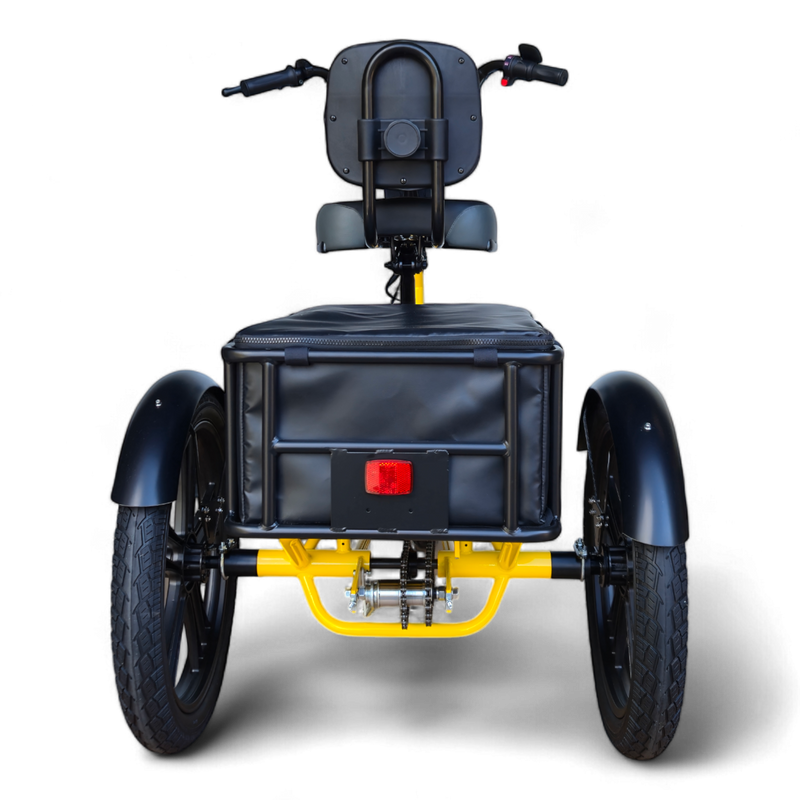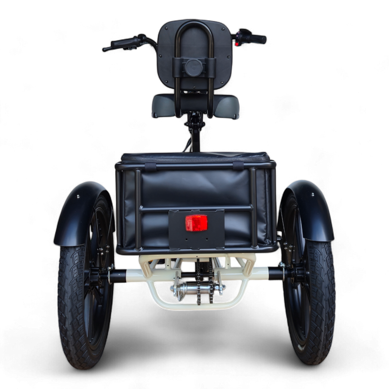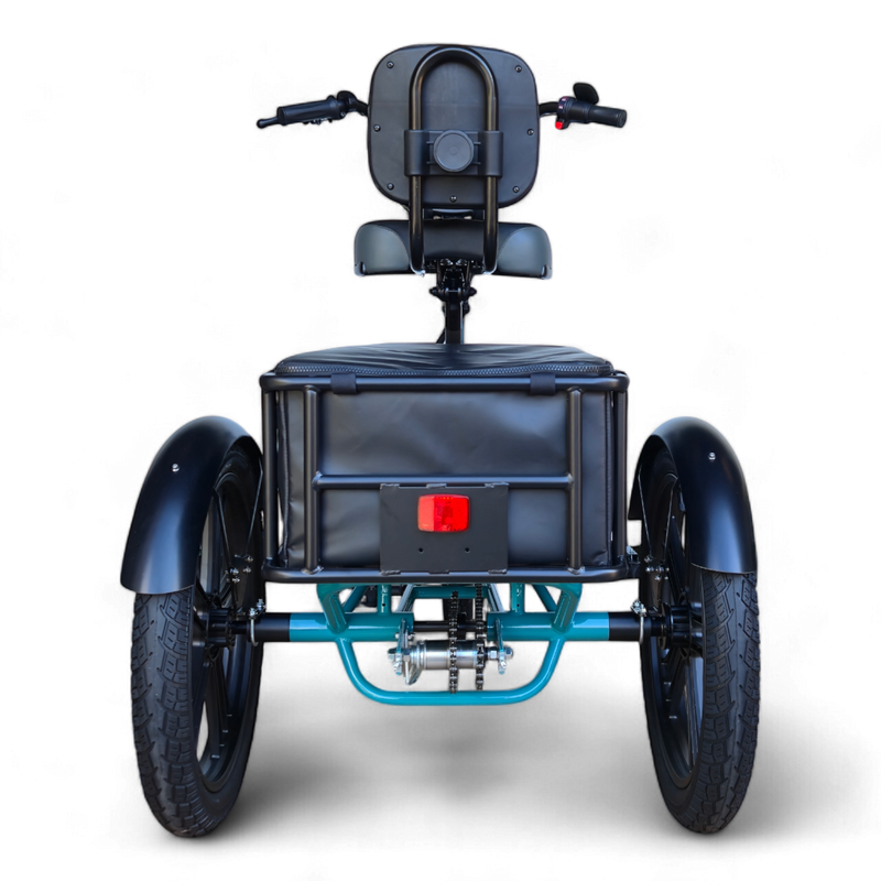 The Liberty Trike’s 750W direct-drive motor delivers rock-solid performance, built to last for years of dependable use. Paired with a hydraulic brake caliper and a 160mm rotor, this system provides exceptional stopping power for confident control on any terrain. The durable, heavy-duty aluminum mag wheels eliminate spoke issues, ensuring a smooth ride with lasting reliability, even under heavy use.